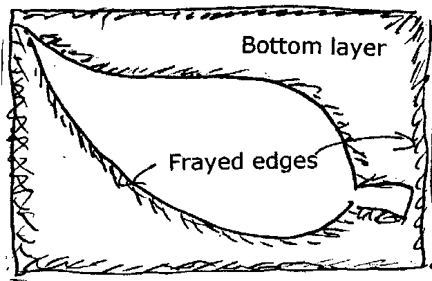 - Cut through the second layer to reveal the bottom layer, and fray these edges around the leaf and border. You can zig-zag these frayed edges to make then neater, but there is no need.
